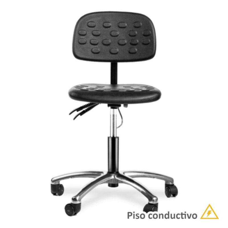 Silla giratoria, respaldo y asiento moldeados de poliuretano piel integral, mecanismo de reclinación de respaldo, ajuste neumático de altura, base de 5 anclas con regatones ó rodajas.