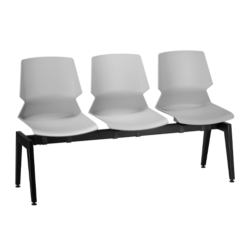 Banca ejecutiva en 3 plazas, asiento y respaldo en una sola pieza, de polipropileno, disponible en color blanco, negro o gris (o combinado), larguero de PTR, base estructura de acero, en negro, regatones ajustables