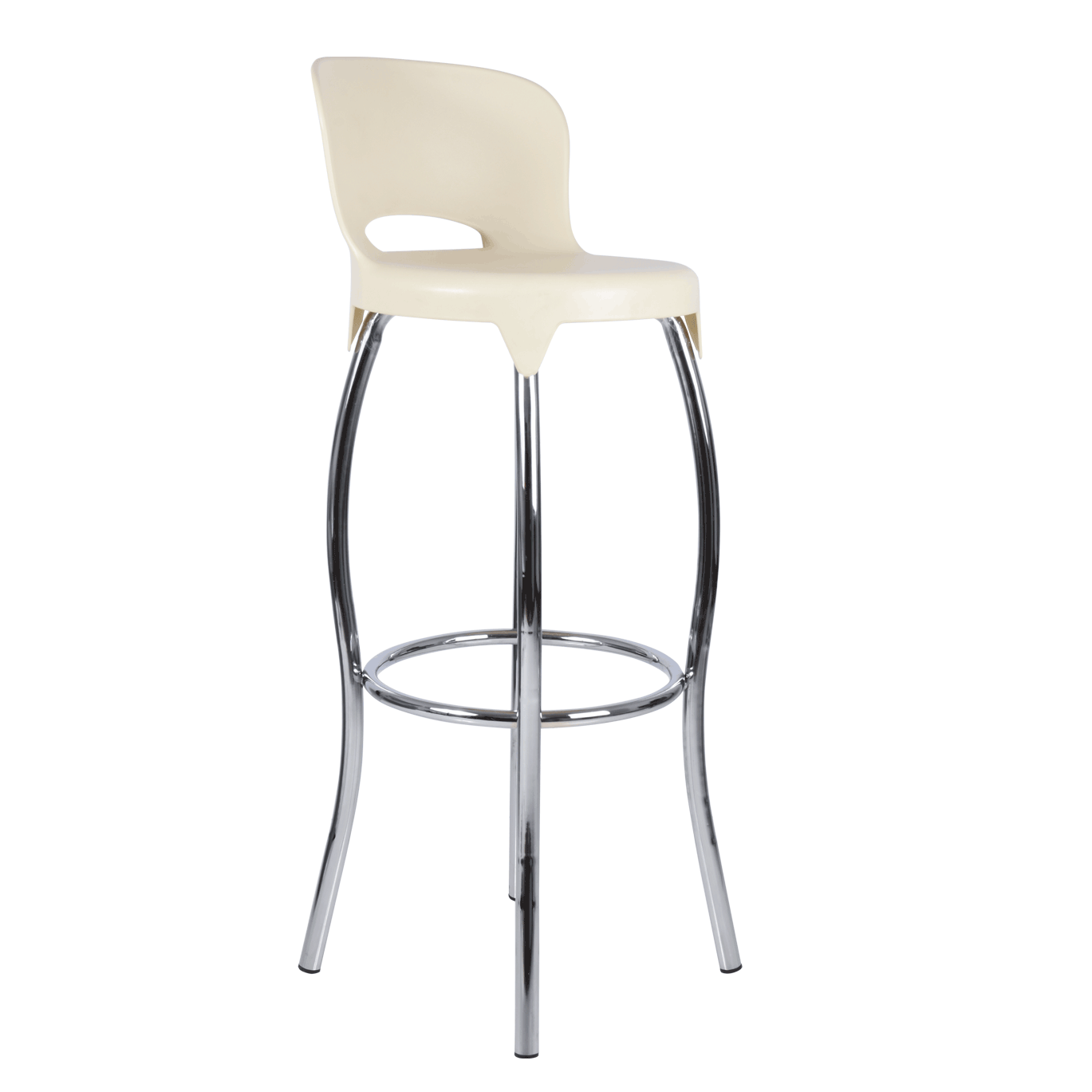 banco alto de importación, con estructura cromada, asiento de polipropileno y aro descansapies