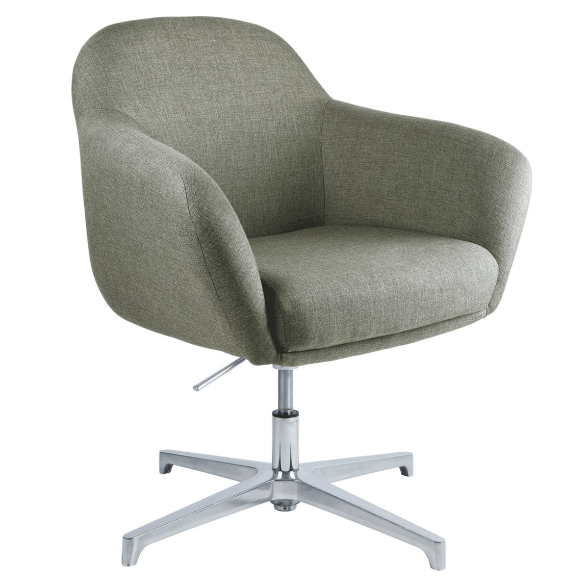 sillón para recepción o visitantes, tipo concha fabricado en madera domada en respaldo y madera laminada en asiento , poliuretano flexible de 27 suave en respaldo y s7 firme en asiento , tapizado en tela , mecanismo giratorio con palanca para ajustar la altura , base de aluminio de 4 puntas