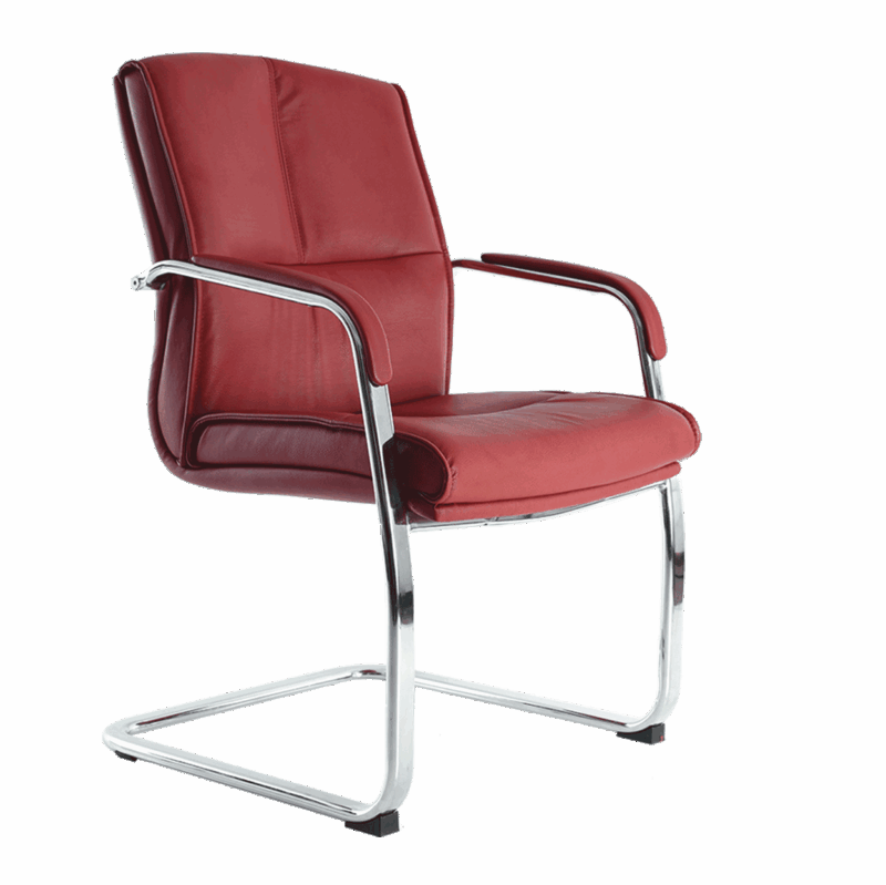 silla para visitante , brazos con pad tapizado , base de trineo en tubo ovalado con refuerzo en el interior terminado en cromo