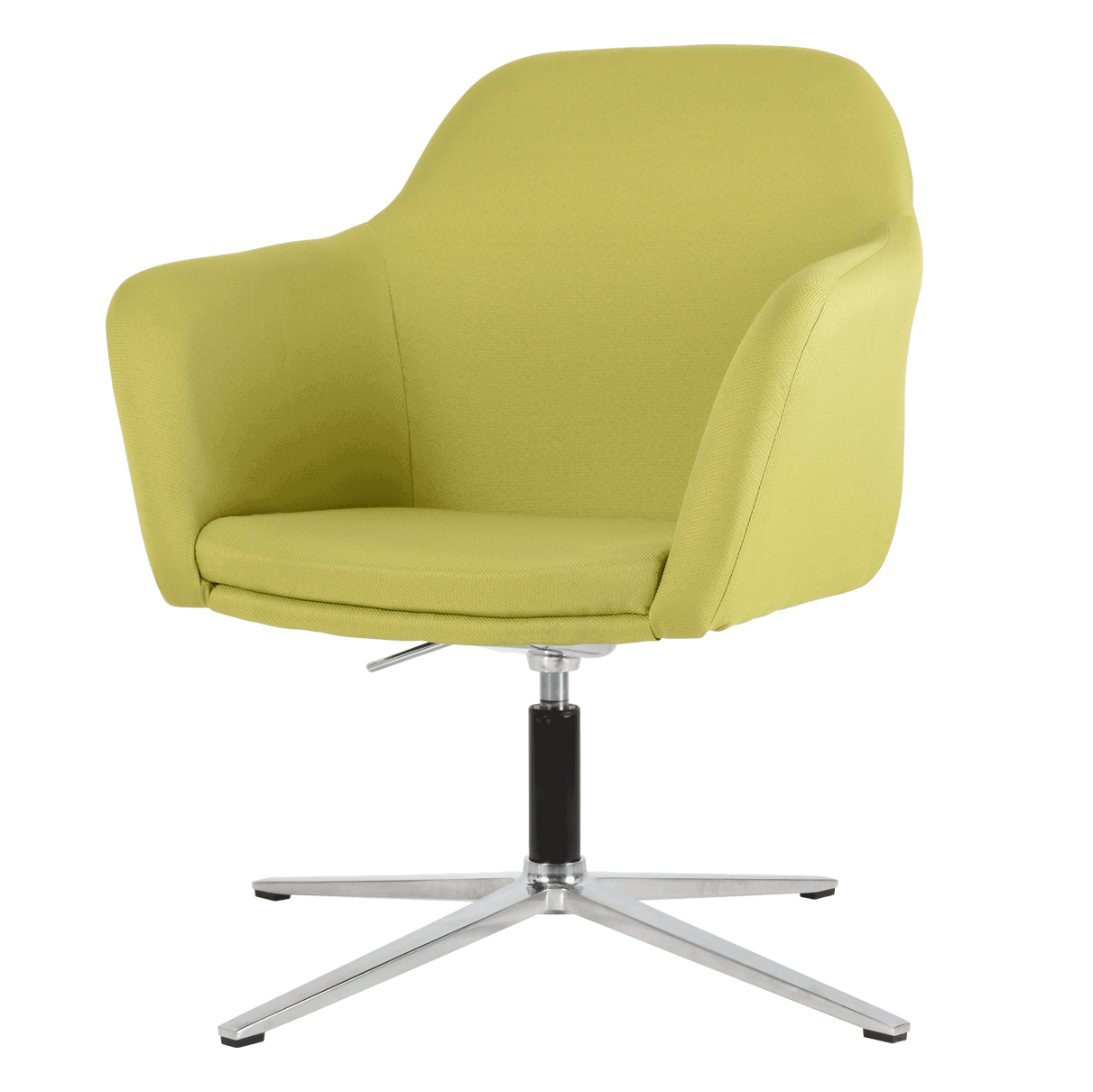 sillón para recepción o visitantes ,tipo concha fabricado en madera domada en respaldo y madera laminada en asiento , poliuretano flexible de 27 suave en respaldo y s7 firme en asiento , tapizado en tela , mecanismo giratorio con palanca para ajustar la altura , base de aluminio grande de 4 puntas con deslizadores