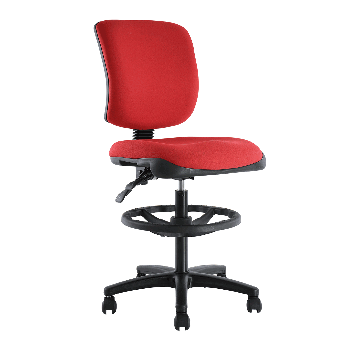 banco alto con mec. 2 palancas, poliuretano inyectado en el asiento, base de nylon de 26 pulgadas, aro descansapies en nylon color negro , piston alto