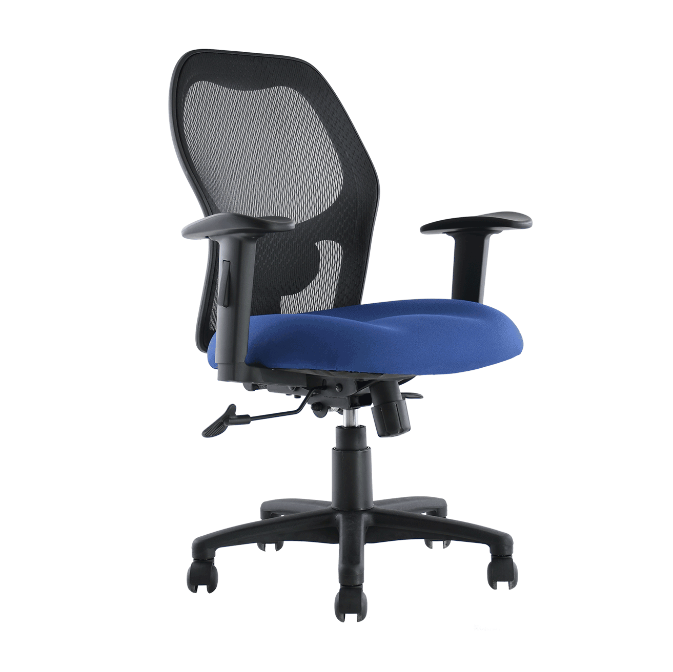 sillón operativo de alto rendimiento de respaldo alto sin cabecera, brazos ajustables de poliuretano inyectado con gel , soporte lumbar con ajuste de altura, mecanismo syncro de dos palancas con bloqueo en cualquier posición, poliuretano inyectado en el asiento, respaldo de malla, base de nylon