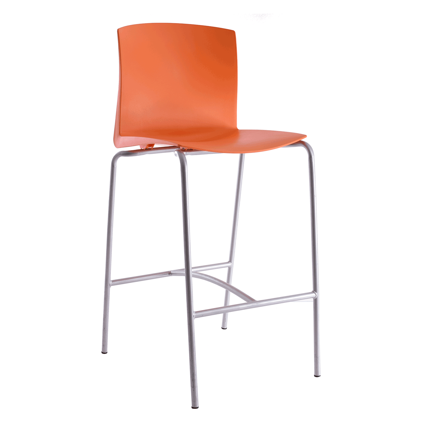 banco alto de 4 patas terminado en pintura color gris, top de asiento fabricado en polipropileno en diferentes colores
