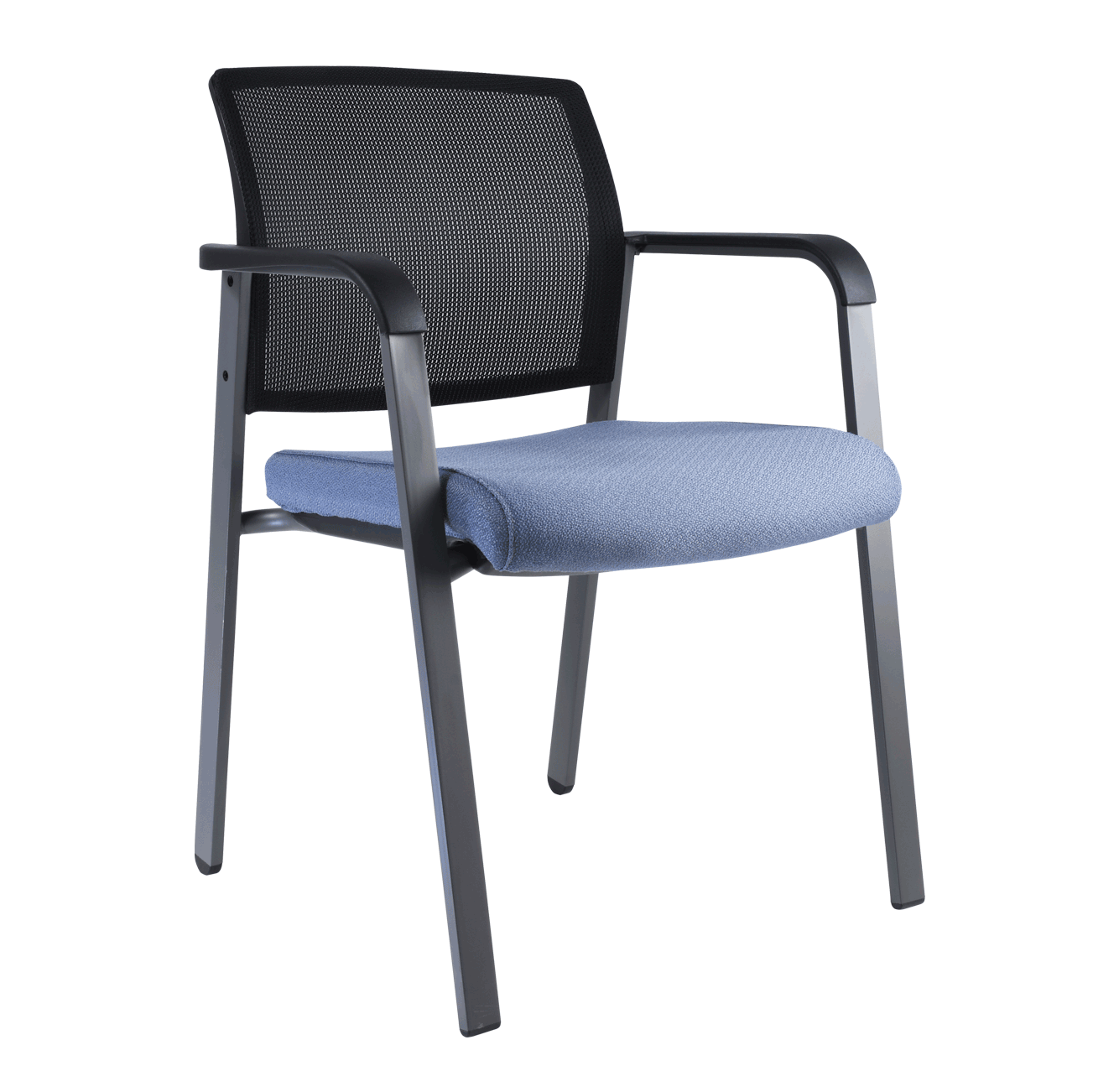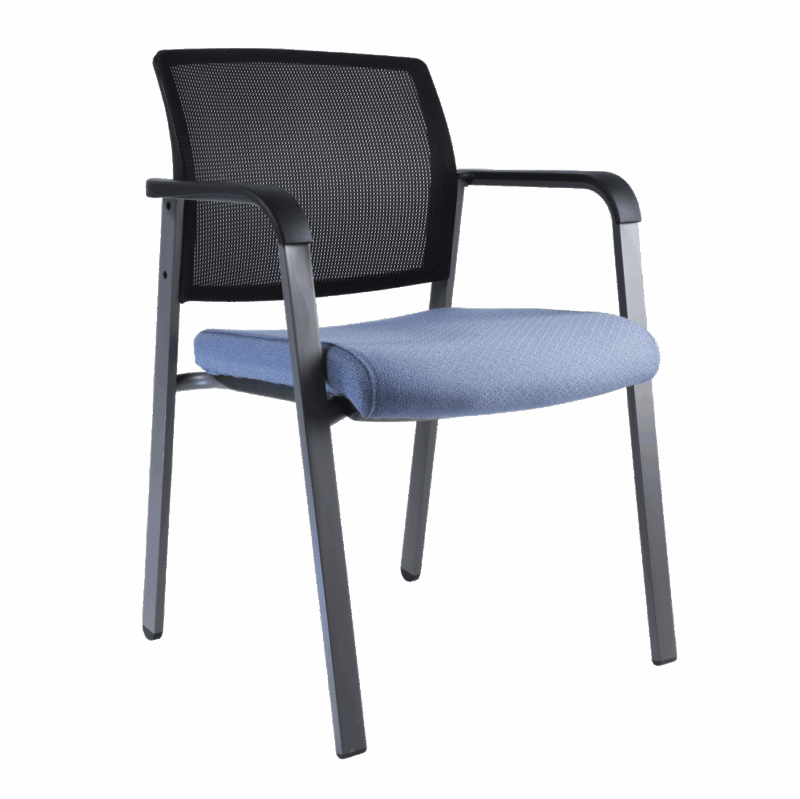 silla para visitante fabricada en estructura de tubo rectangular terminado en pintura color gris, brazos de polipropileno color negro, malla en respaldo , asiento amplio tapizado en tela , tapa protectora en asiento