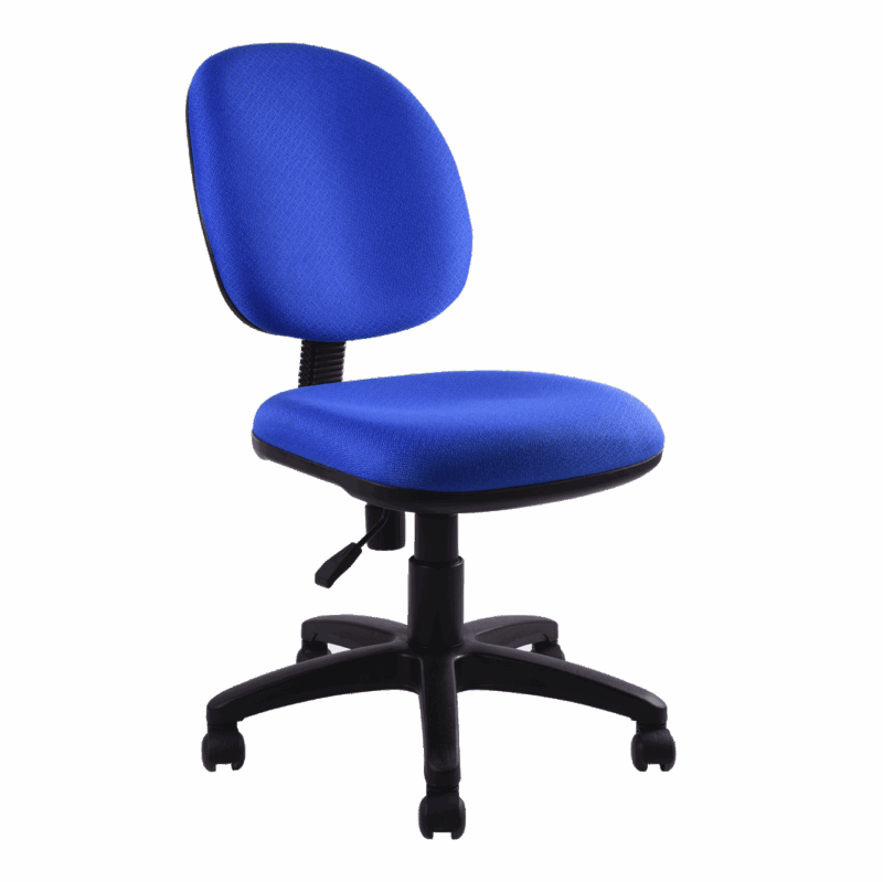 Silla secretarial, con mecanismo de respaldo reclinable, sin brazos, base reforzada de 5 puntas con rodajas