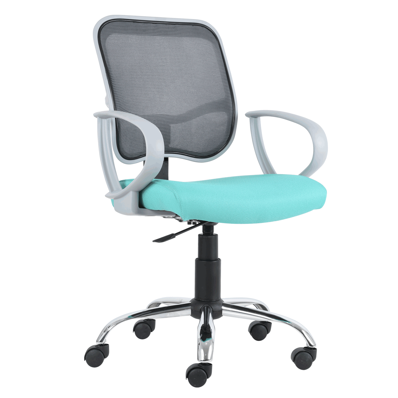 silla secretarial con brazos , respaldo y brazos color gris y base cromada