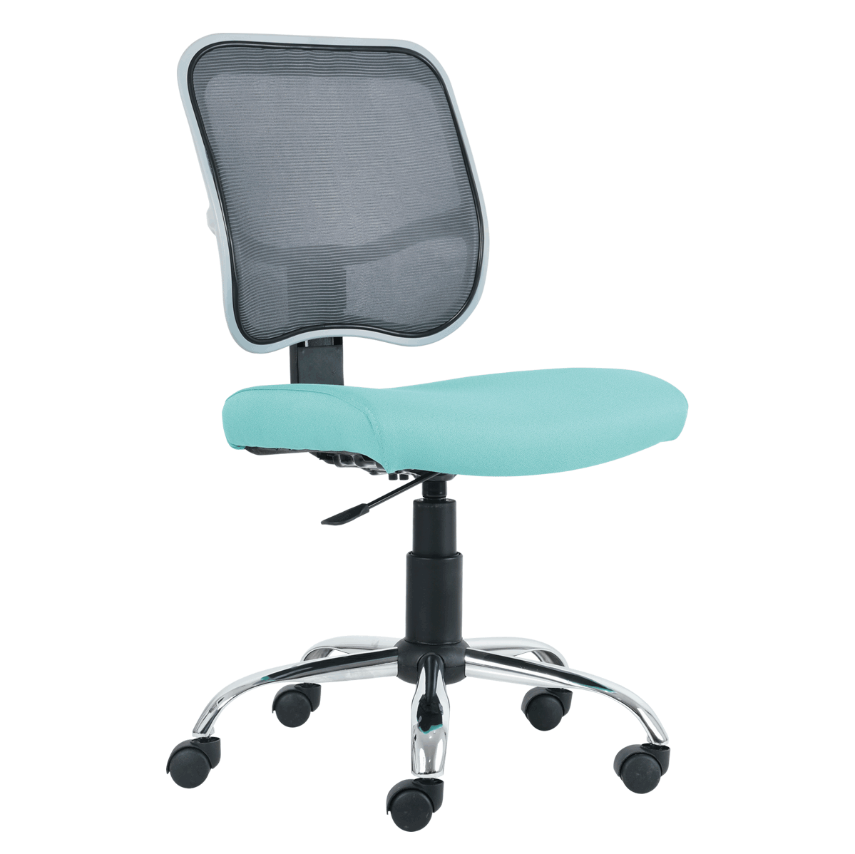 silla secretarial sin brazos, respaldo en color gris , con base cromada