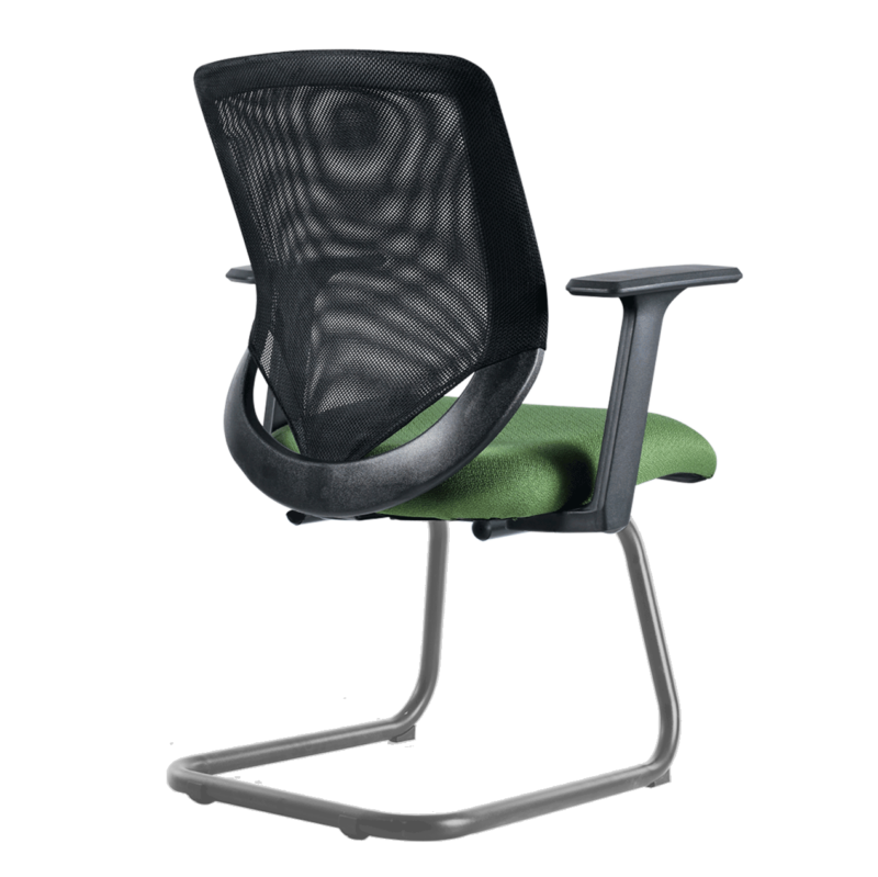 silla para visitante con trineo cromado , tapizada con respaldo de malla color negro, asiento tapizado