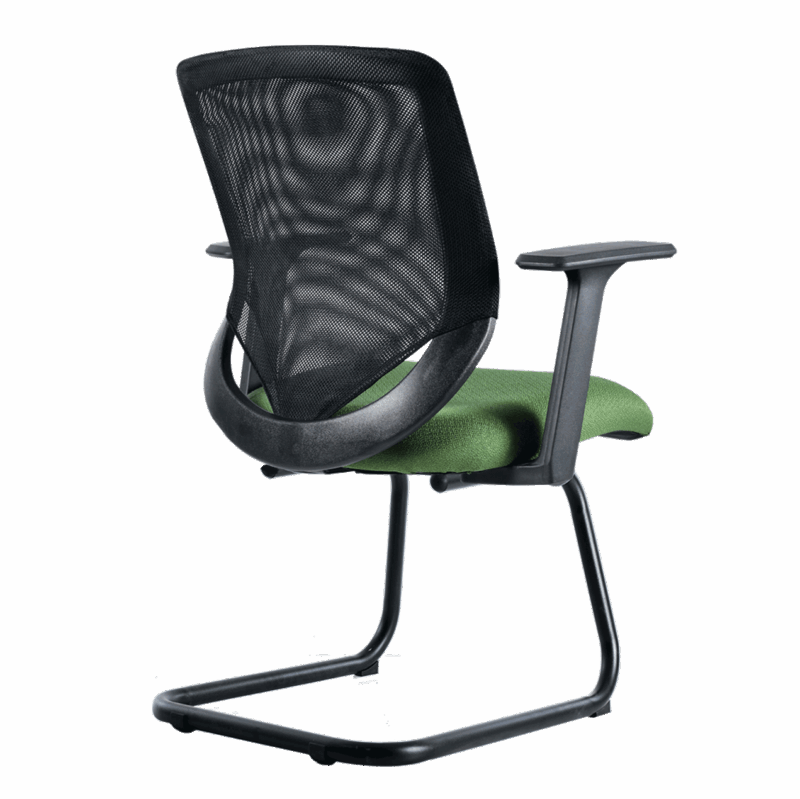 silla para visitante con trineo color negro , tapizada con respaldo de malla color negro, asiento tapizado en cualquier tela de nuestros muestrarios