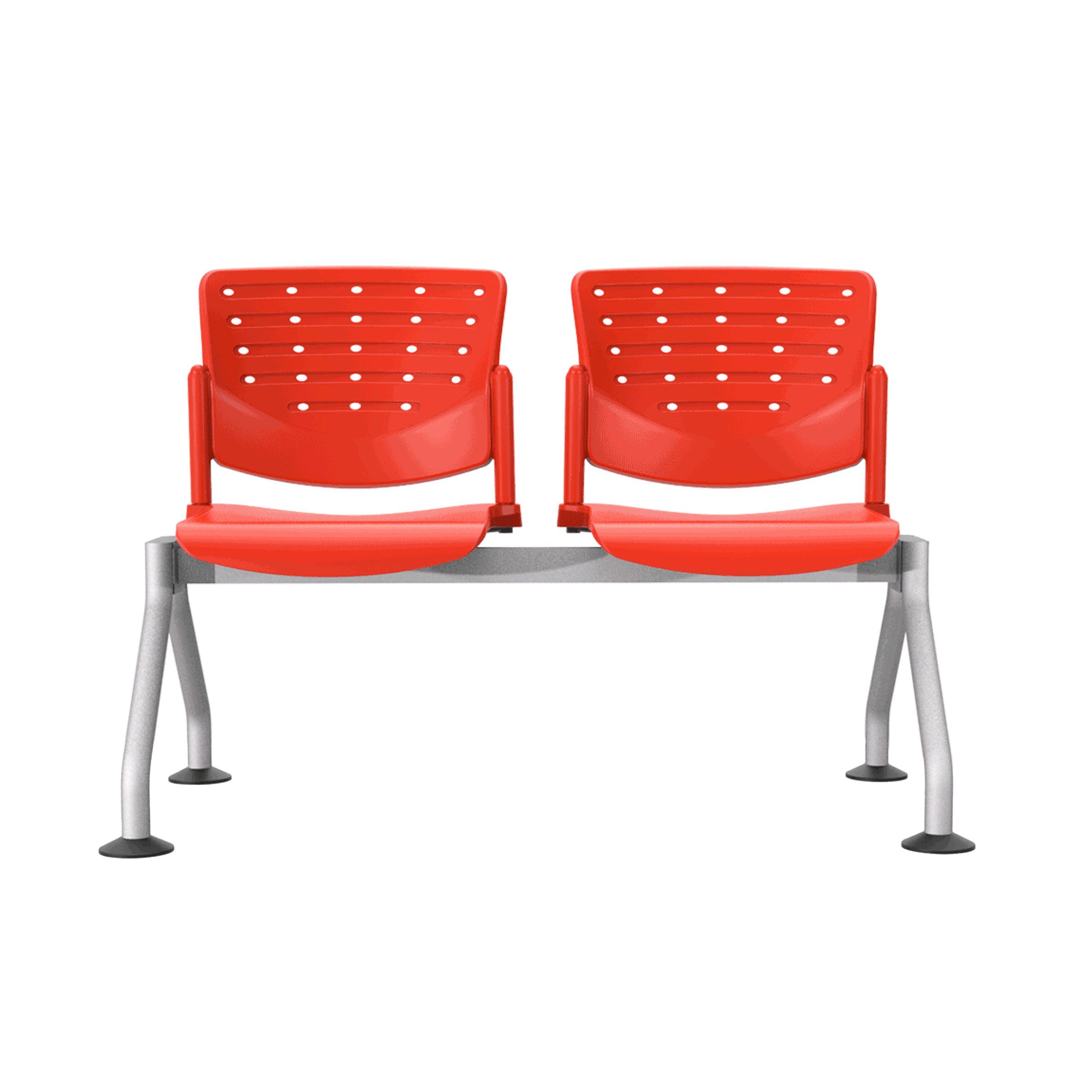banca de 2 plazas , con estructura metálica, terminada en color gris, asientos y respaldos fabricados en polipropileno