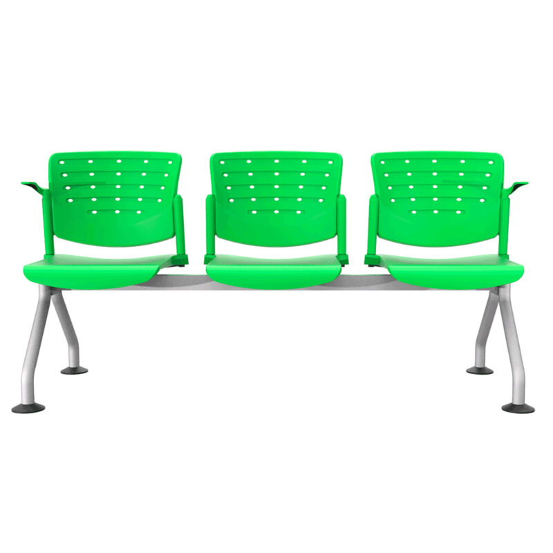 banca de 3 plazas , con estructura metálica, terminada en color gris, asientos y respaldos fabricados en polipropileno