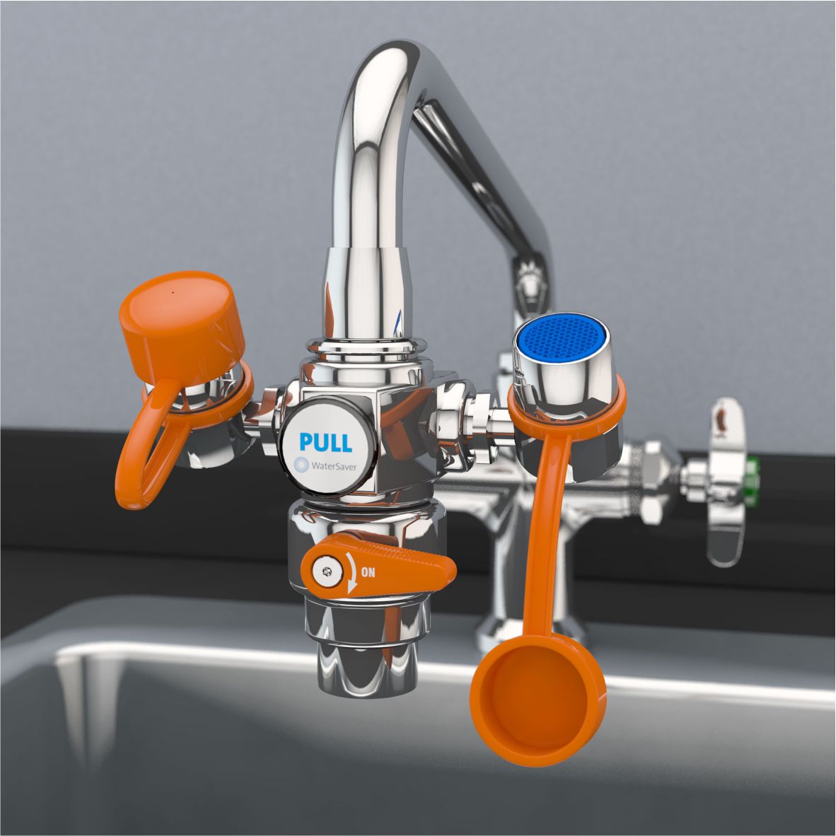 Aplicación: Los lavaojos montados en el grifo EyeSafe™ convierten cualquier grifo en una estación de lavado de ojos de emergencia sin interferir con el funcionamiento normal del grifo. Se puede instalar una unidad EyeSafe™ en cualquier fregadero, cerca de donde podrían ocurrir accidentes.
