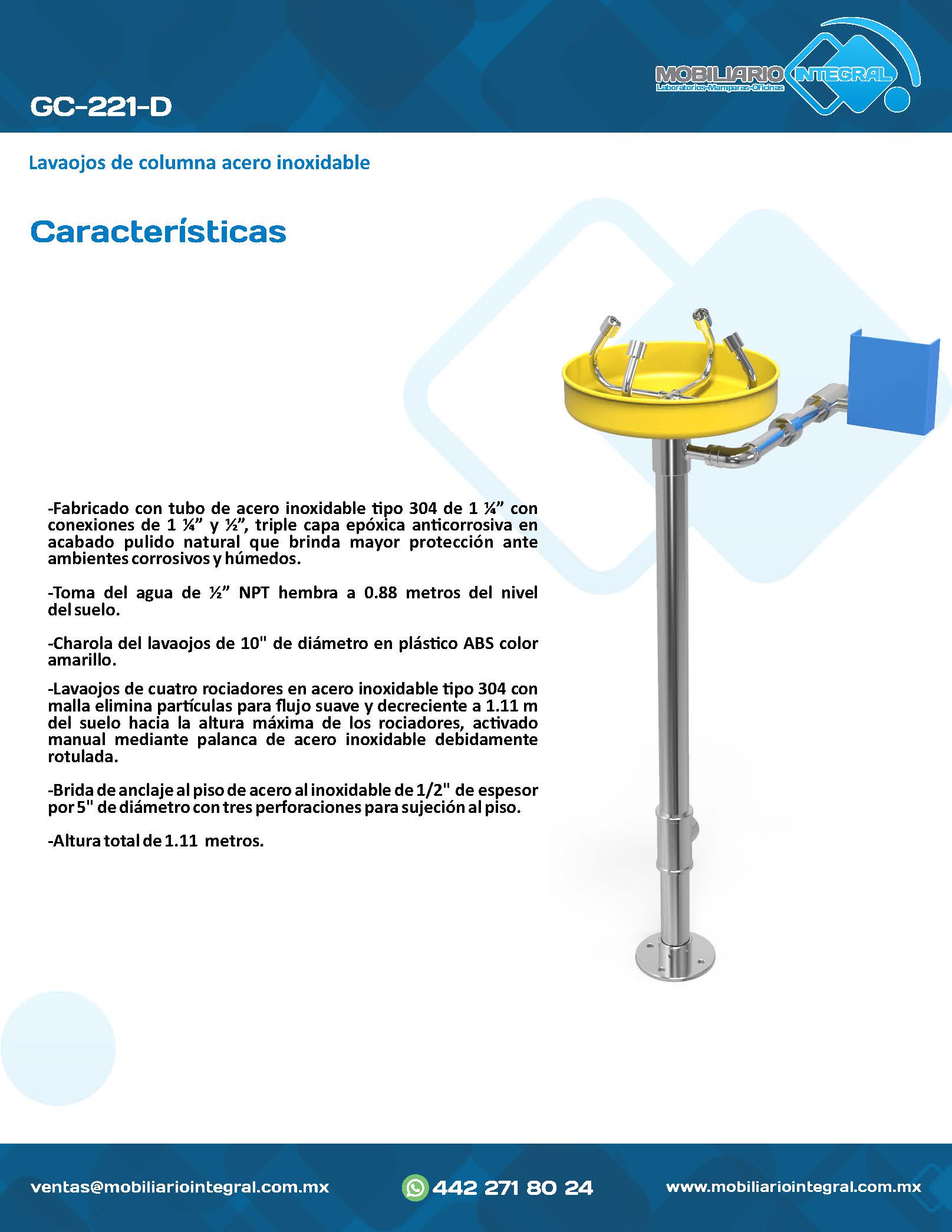 GC-221-D Lavaojos de columna acero inoxidable