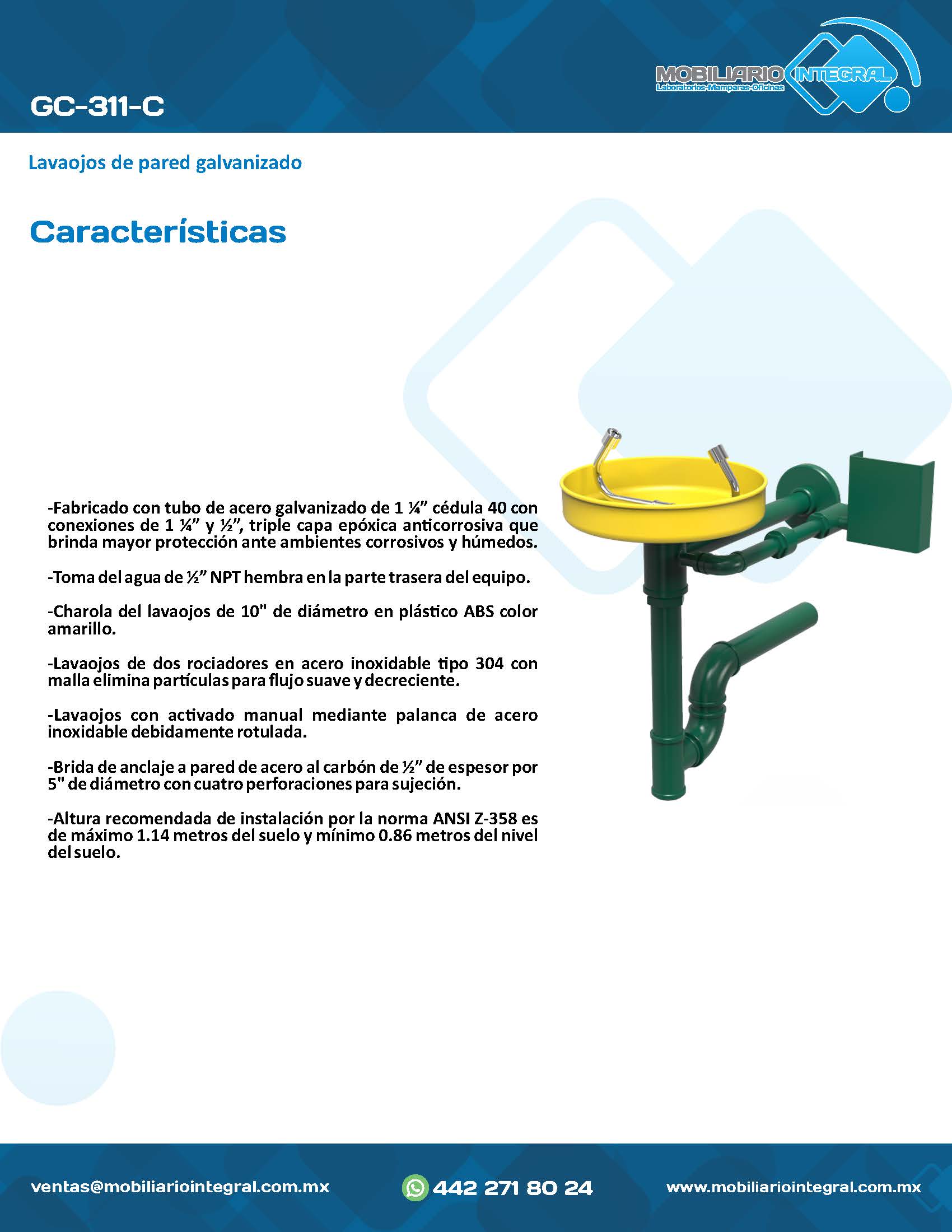 -Lavaojos de 2 rociadores -Charola de plástico ABS amarillo