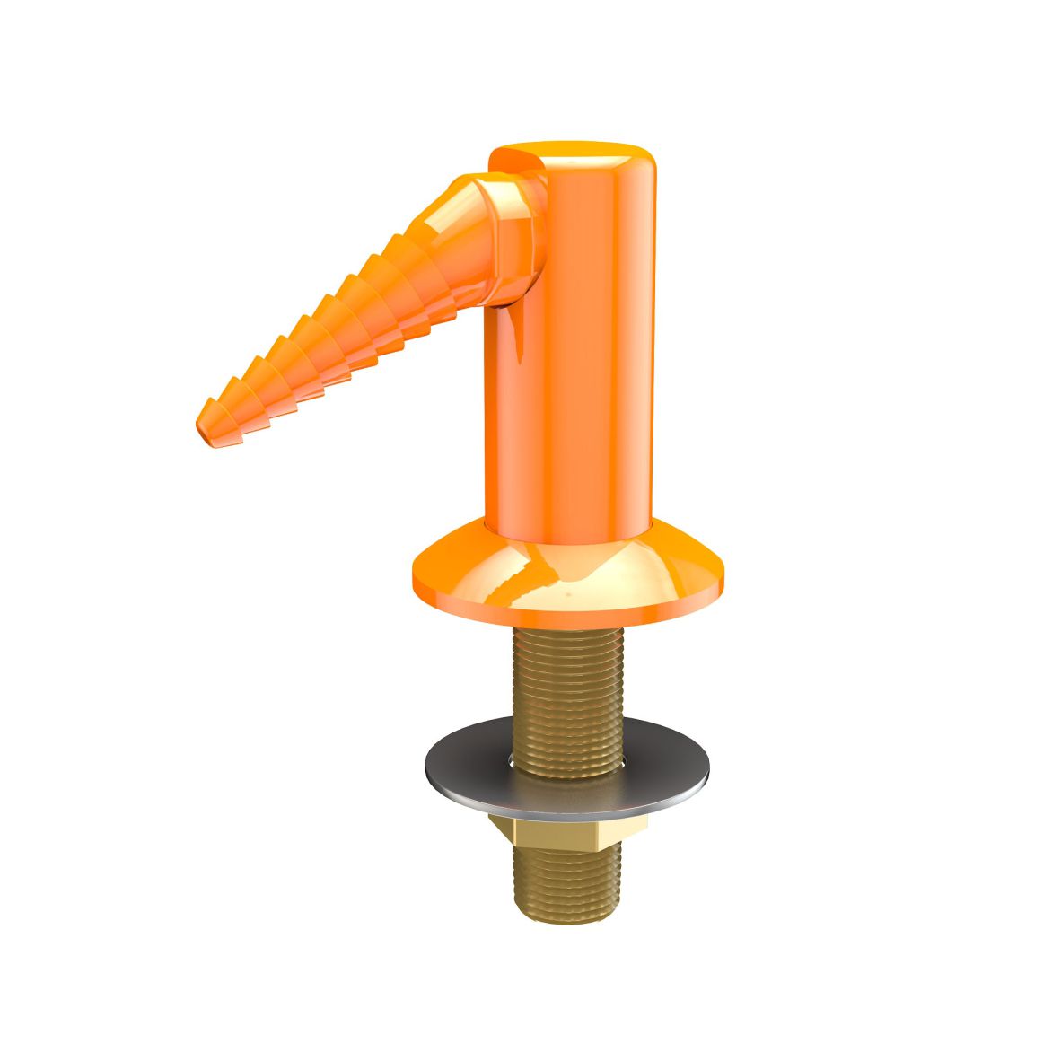 Torreta montada en cubierta con un ángulo de 30 grados y diez extremos de manguera dentada. Equipado con vástago de montaje, contratuerca y arandela. Entrada macho NPT de 3/8ʺ.