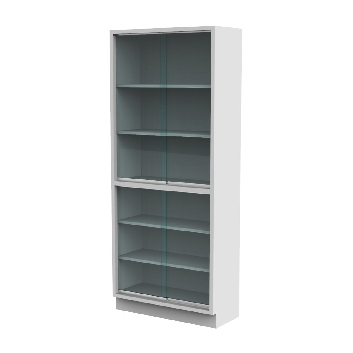 -Con dos puertas de vidrio y cuatro entrepaños.