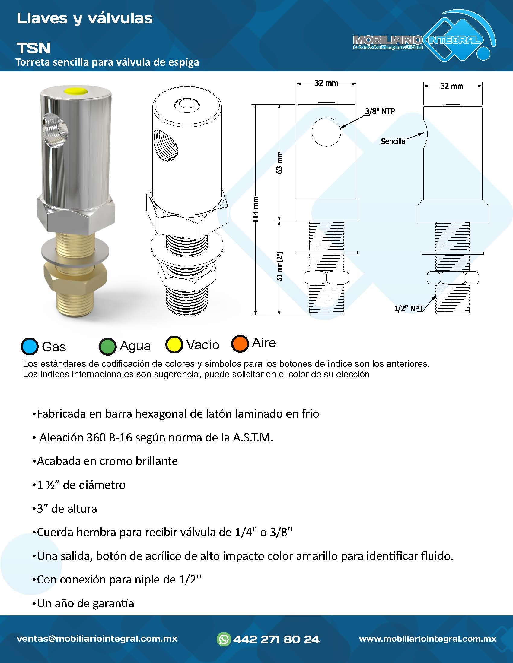 -Una salida, botón de acrílico de alto impacto para identificar fluido.