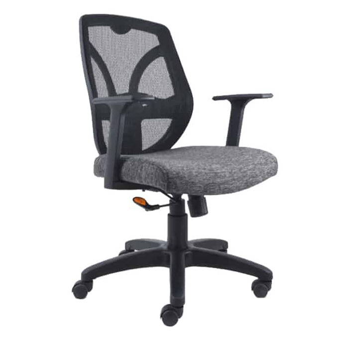 silla operativa de respaldo medio con mecanismo syncro ejecutivo reclinable, brazos de polipropileno , respaldo tapizado en malla, asiento fabricado en madera domada , espuma de poliuretano flexible , base de 5 puntas fabricada en nylon